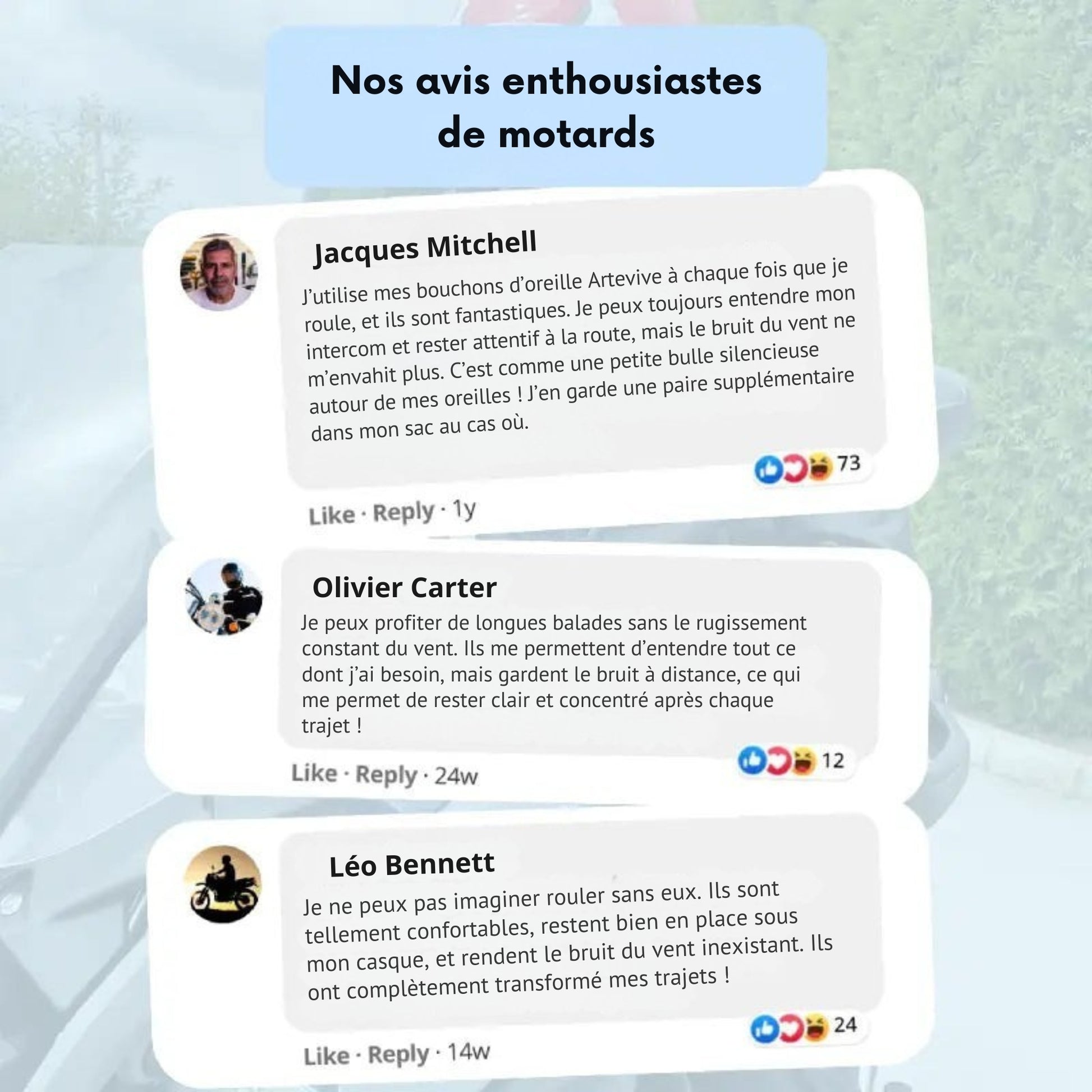 Les bouchons RidersPro réduisent jusqu’à 27 dB de bruit nocif.